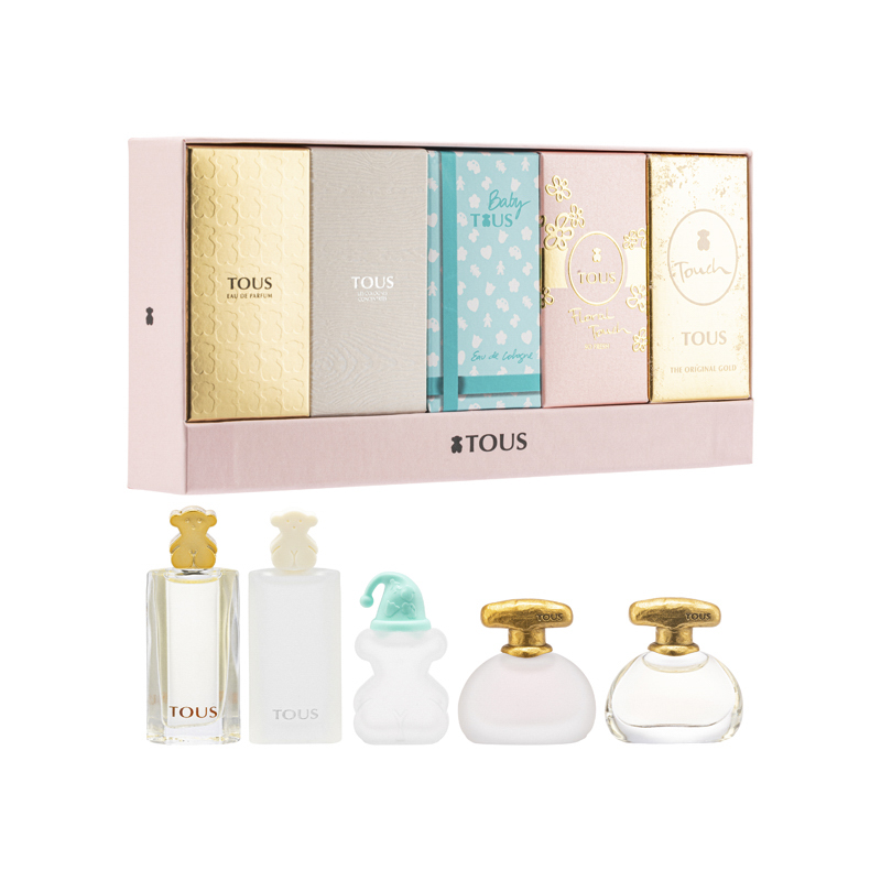 品的介紹...【TOUS 迷你香水套裝 B 2019】(5件裝)TOUS 黃金小熊限量版淡香水前調:黑醋栗、玫瑰中調:梔子花、牡丹、橙花後調:白麝香、西洋杉TOUS 清漾小熊女性淡香水香調:花草麝香調前調:牡丹精華、地中海橘果香中調:玫瑰、茉莉後調:檀香、麝香TOUS